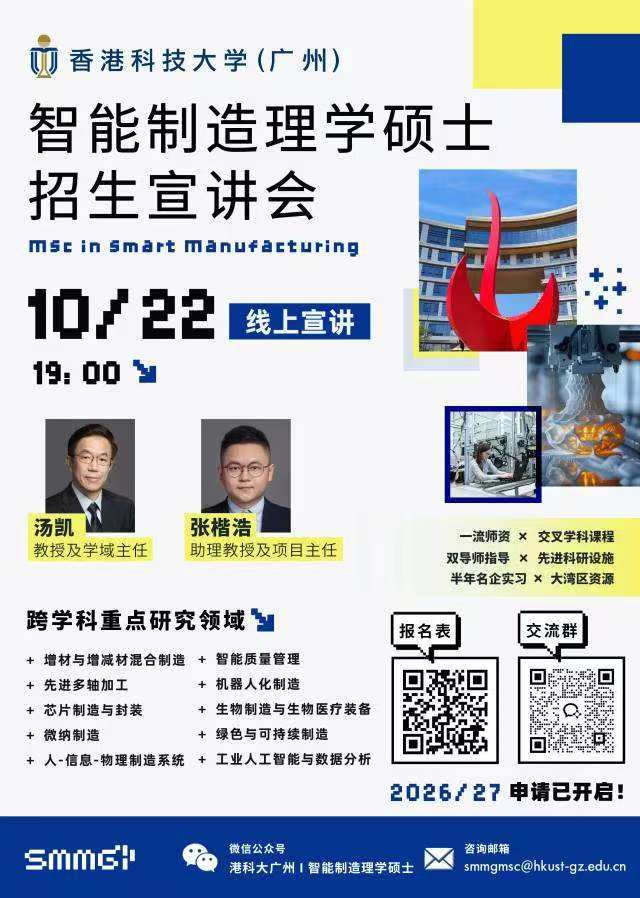香港科技大学广州|智能制造理学硕士学位项目招生宣讲会—线上专场!!